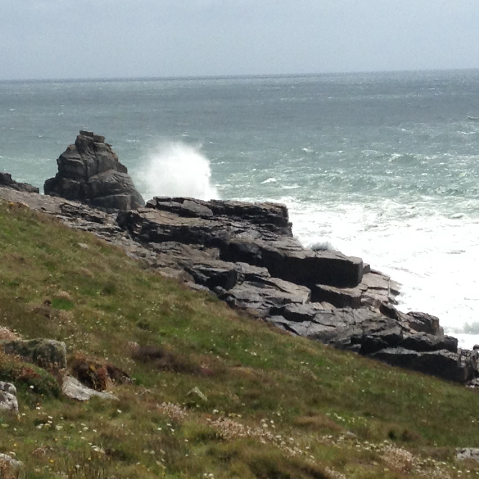 Yesterday’s rain was replaced with today’s gale force winds, which made for some great waves and sea spray, and also added an extra element of excitement to our first really big cliffs of the walk.